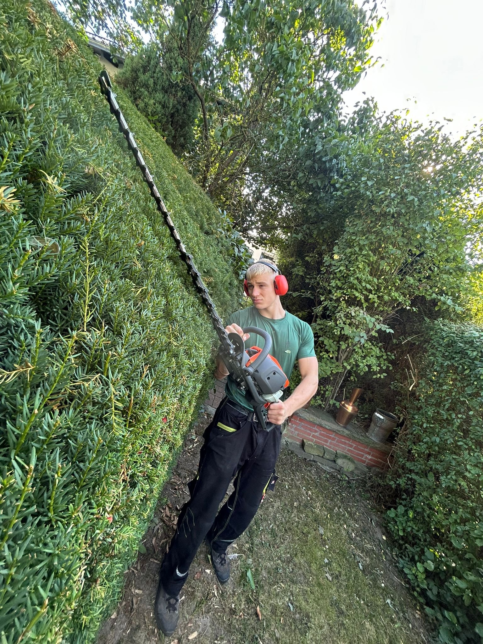 Eine gepflegte Hecke braucht regelmäßigen, fachgerechten Schnitt — zur richtigen Jahreszeit und mit dem richtigen Maß. Wir schneiden Hecken aller Art: formgebunden oder naturnah, klein oder großflächig. Dabei achten wir auf gesetzliche Schnittzeiträume zum Schutz von Brutvögeln und arbeiten sauber und zügig, auch bei langen Grundstücksgrenzen.